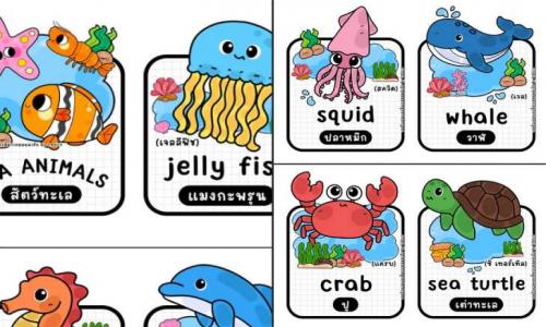 ฟรีสื่อการเรียนการสอน บัตรคำสัตว์ทะเล Sea Animals