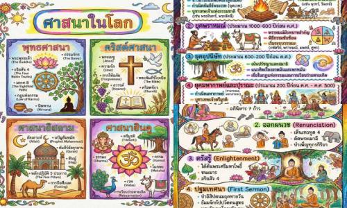 ฟรีสื่อการเรียนการสอน ศาสนาในโลก สรุปประวัติความเป็นมาของศาสนาพุทธ ศาสนาพราหมณ์ฮินดู ศาสนาอิสลาม ศาสนาคริสต์
