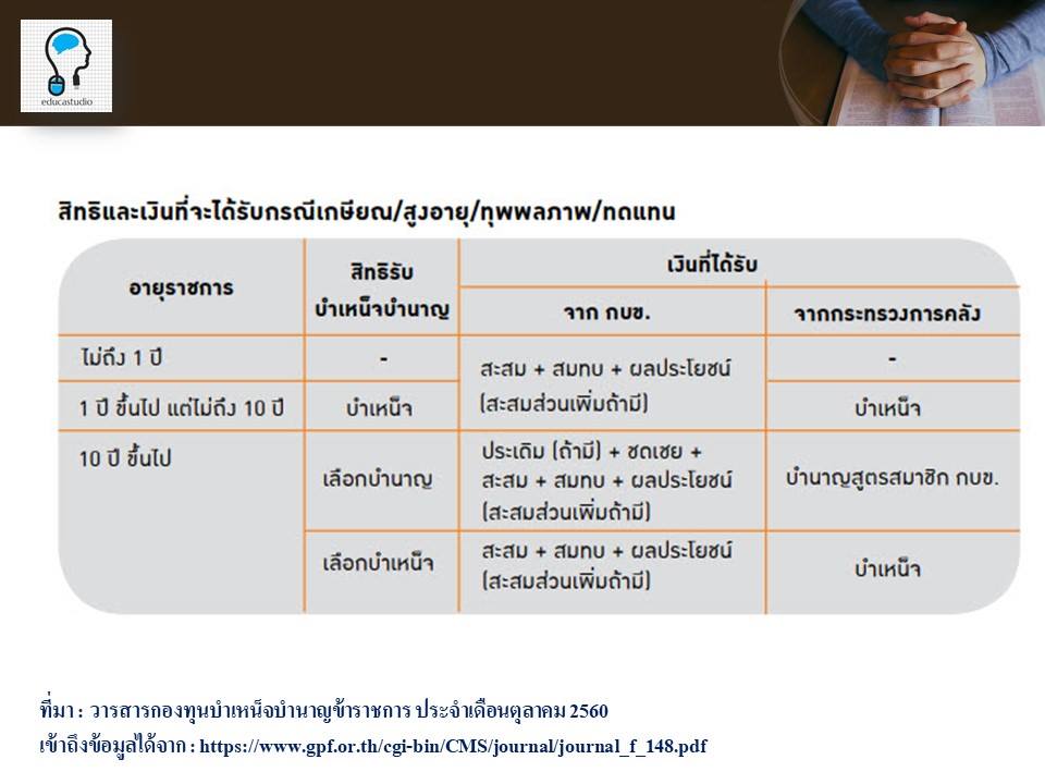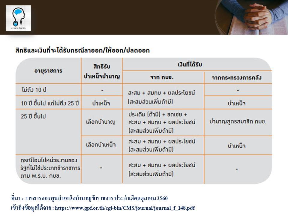 ที่มา : วารสารกองทุนบำเหน็จบำนาญข้าราชการ ประจำเดือนตุลาคม 2560 เข้าถึงข้อมูลได้จาก : journal_f_148.pdf
