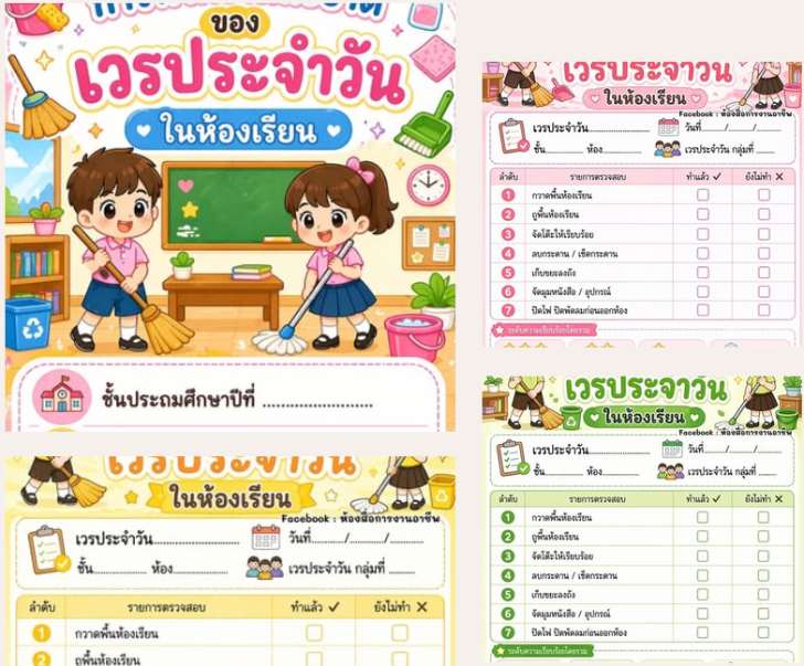 ฟรีสื่อการเรียนการสอน แบบบันทึกการทำความสะอาดของเวรประจำวัน